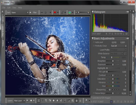 Bibble Pro - профессиональная программа для просмотра и обработки цифровых фотографий. С помощью данной программы вы сможете исправить баланс белого цвета, устранить нежелательные оттенки, отрегулировать контрастность, резкость, цвета, насыщенность, подготовить и распечатать цифровые фотографии, а также установить рейтинг для отдельно взятых фотографий. Кроме того, программа позволяет устранять шумы на фотографиях, хроматические аберрации, виньетирование и прочее. В программе присутствует фирменная технология Perfectly Clear, которая позволяет улучшать цифровые фотографии одним кликом мышью. Программа позволяет просматривать изображения, обрабатывать фотографии в пакетном режиме, работать с RAW изображениями, и поддерживает цифровые камеры многих производителей.
