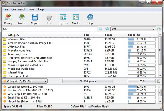 DiskSorter Pro - утилита для классификации файлов, которая позволяет Вам просматривать свой жесткий диск в разрезе заданных категорий и классифицировать Ваши файлы по размеру, расширениям, типу, времени открытия и другим критериям. Так же есть функции экспорта отчетов в HTML, Excel CSV и текстовые форматы, много поточные операции, поддержка имен UNC и многое другое. Программа может обработать до 1 миллиона файлов за одну операцию.