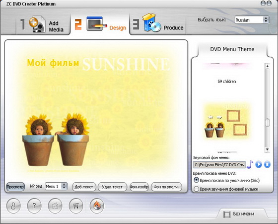 ZC DVD Creator Platinum - программа является простым инструментом для создания DVD дисков с вашими фильмами или видеоклипами, позволяет конвертировать практически любой видео источник для записи DVD напрямую, без сохранения файлов видео на жестком диске. В программу встроена галерея готовых шаблонов меню для DVD диска в голливудских стилях. Так же вы сможете создать свое или отредактировать уже готовое меню, чтобы придать своему видео профессиональный вид. Программа имеет множество других возможностей для полноценного создания DVD дисков. С помощью этой программы вы можете дать свободу своему творчеству и возможность персонализировать свои видео-ролики и фильмы.