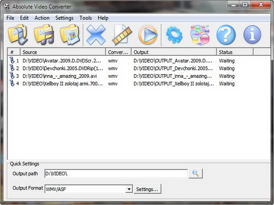 Absolute Video Converter - является видео конвертером между VCD, SVCD, DVD, AVI, XDIV, MPEG4, WMV, ASF форматами, с возможностью выбора скорости, битрейта, стандартов видео (PAL,NTSC), скорости кадров в секунду, и многими другими параметрами. Также при помощи программы можно извлекать звук из видео файлов, и изображения.