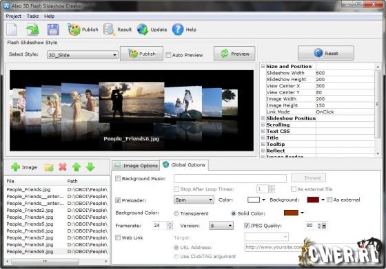 3D Flash Slideshow Creator - программа для создания качественных 3D слайд-шоу с различными эффектами. Сделайте трехмерный показ слайдов фотографии, трехмерное меню документа, трехмерный показ карусели, трехмерный скроллер изображения и ролик изображения без знания Flash технологий.