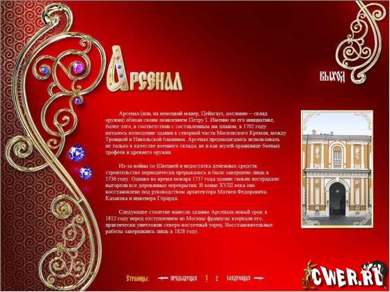 3.Каталог содержит статьи обо всех основных строениях, расположенных на территории Московского Кремля, а также их фотографии. Несомненно, вы почерпнете здесь много нового!