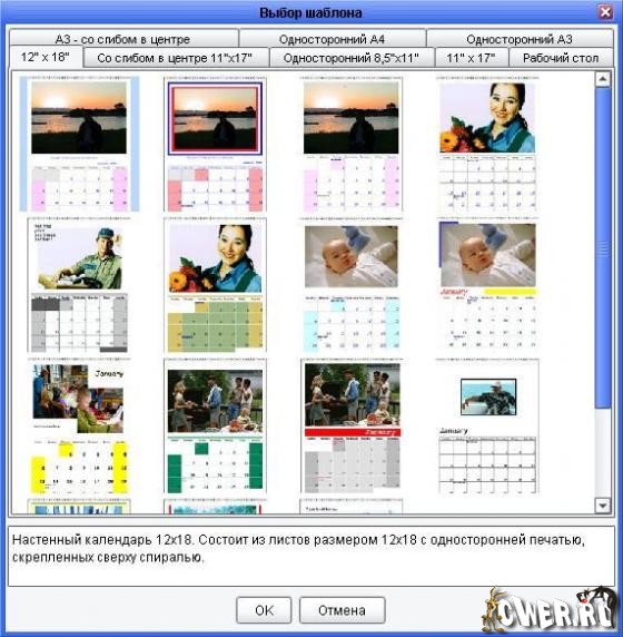 Программа предлагает на выбор множество различных заготовок календарей, которые могут быть как настенными, так и настольными. Также календари различаются по размерам и вариантам печати (односторонняя или двухсторонняя). По окончании редактирования, календарь может быть сохранен как файл программы, экспортирован в .jpeg или .pdf и, конечно, напечатан.