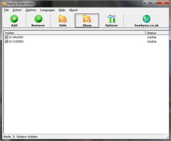 Family Folder Hider will give you the possibility to hide all your sensitive information from your kids, spouse or even hackers. With a couple of clicks of the mouse button any folder can be instantly hidden from view and is in fact removed from all windows explorers etc. You might have some pictures or video's that you want to hide from the kids, our software will let you hide the folder they are in so no one knows that they are even there. You might also want to hide a folder that contains all your passwords or sensitive information such as bank accounts etc. If your PC gets stolen no one will find your data. Family Folder Hider is really the only security tool that you will ever need.