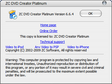 Скачать программу ZC DVD Creator Platinum 6.6.4 (34,08 МБ):