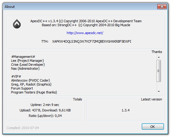 Скачать программу ApexDC++ 1.3.4 x86 (6,8 МБ):