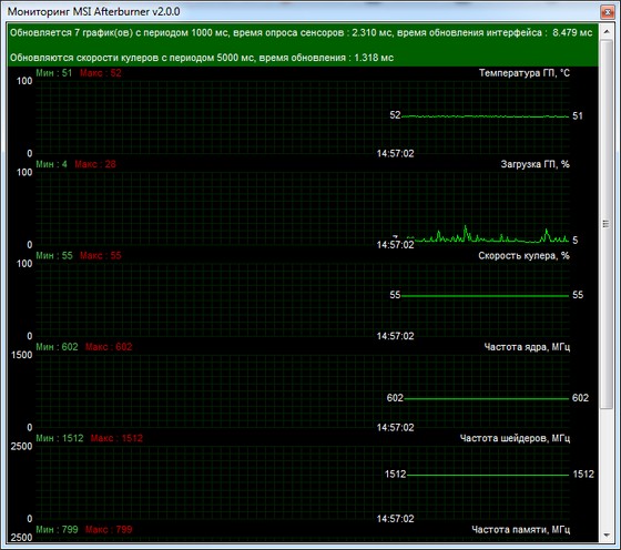 MSI Afterburner - утилита для разгона видеокарт, работает со всеми изготовителями. Позволяет с легкостью изменять частоты GPU/Shader/Memory, управлять скоростями вращения крыльчатки вентиляторов, изменять напряжения и т.д.