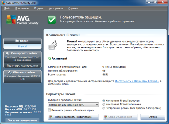 6. Контроль за сетевыми соединениями. При помощи встроенного файрволла AVG проверяет все входящие и исходящие запросы на соединение с компьютером, предотвращает сетевые атаки на компьютер, и сетевую активность программ-троянов.