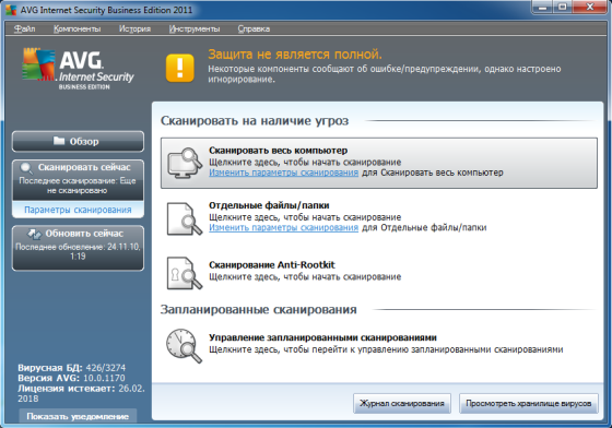 Скачать программу AVG Internet Security Business Edition 2011 v10.0.1170 x86 (152,18 МБ):