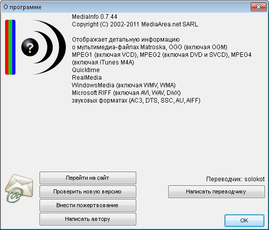 Скачать программу MediaInfo 0.7.44 Final x64 (3,4 МБ):