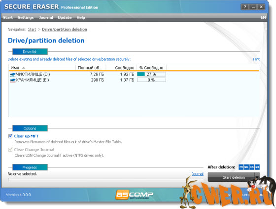 Скачать программу Portable Ascomp Secure Eraser 4.0.0.0 Professional Edition (5,93 МБ):