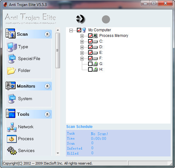 Anti-Trojan Elite - программа для удаления всевозможных троянов и keylogger, которая также поможет обезопасить вашу работу на компьютере. Утилита может сканировать, в поисках опасных файлов, жесткий диск или память ПК, обладает встроенным сетевым менеджером для мониторинга протоколов, имеет менеджер запущенных процессов, позволяет создавать резервные копии удаляемых файлов. Кроме того, присутствует модуль оптимизации работы ПК, функция обновления программы через Интернет, имеется поддержка работы со сжатым файлами, защита реестра и т.д.