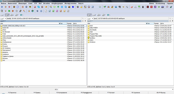 Total Commander – пожалуй, самый популярный файловый менеджер со всеми необходимыми для подобных программ функциями. Кроме всех инструментов, характерных для файловых менеджеров, Total Commander содержит очень удобные просмотрщики мультимедиа и графических файлов, распаковщики ZIP, ARJ, LZH, RAR, UC2, TAR, GZ, CAB, ACE и дополнительные dll для других архивных файлов; чрезвычайно удобный ftp-клиент: можно скачивать/закачивать файлы в несколько потоков, предусмотрена докачка, поддержка www-прокси при работе с ftp и есть даже такая функция как подключение к заданному ftp в заданное время. Никогда не помешают и такие функции как UUE/MIME/XXE кодирование/декодирование и разрезка/склейка длинных файлов, а также множество других возможностей, крайне необходимых для работы с файлами.