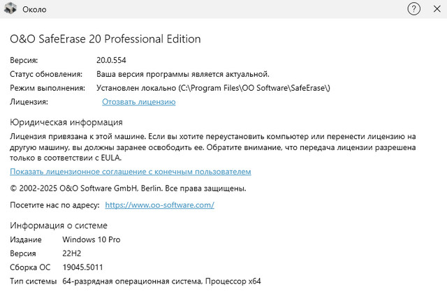Скачать программу O&O SafeErase Professional 20.0.554 (32,24 МБ):