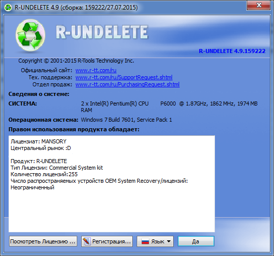 Скачать программу R-Undelete 4.9 Build 159222 (38,39 МБ):