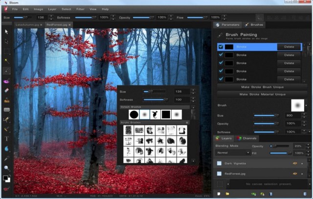 Bloom - графический редактор, позволяющий производить "неразрушающее редактирование". Каждый фильтр, эффект, мазок или вектор нанесенный на изображение хранит настройки редактирования отдельно. Это позволяет вернуться ко всему, что вы сделали в прошлом и настроить его без повторного выполнения всей последующей работы. Даже мазки кисти доступны для редактирования после того, как вы нарисовали их!