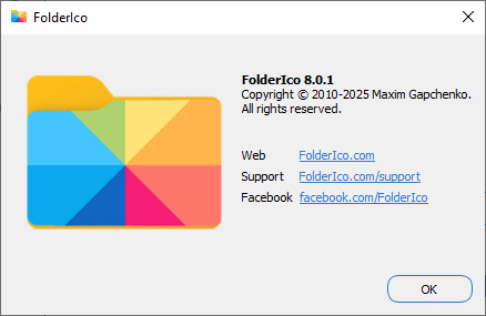 FolderIco — средство для изменения внешнего вида значка папки, чтобы при необходимости её можно было легко отыскать среди других. В отличие от стандартной возможности операционной системы, Folderico может применять к папке различные стили. Доступ к функциям программы осуществляется через контекстное меню проводника. Возможно изменить как цвет папки так и её изображение выбрав его из предоставляемого списка. Программа не занимает много места и проста в использовании.