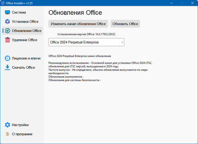 Office 2013-2024 C2R Install - программа для онлайн установки Microsoft Office 2013-2024 на ваш ПК. Преимуществом программы есть возможность установки отдельных компонентов офис 2013-2024, а так же выбора языка устанавливаемого офисного пакета и выполнить активацию.