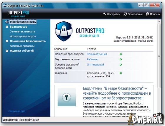 Собравший обширную коллекцию наград Outpost Firewall Pro доказал, что является надежным препятствием для программ-шпионов, хакеров, вредоносной активности ПО и потери информации, предотвращая любую попытку несанкционированного доступа к вашему компьютеру.
