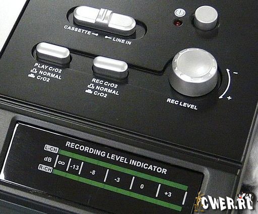 Помимо порта USB, на задней панели деки можно обнаружить порты RCA ("тюльпаны") и регулятор уровня входного сигнала. Графическая шкала на передней панели показывает уровень записываемого сигнала.