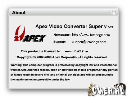 Скачать программу Apex Video Converter Super 7.28 (15,07 МБ):