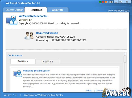Скачать программу WinMend System Doctor 1.4 (5,80 МБ):