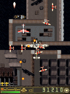 1942 – шутер, в котором ваш самолет летит снизу вверх попутно отстреливая многочисленных врагов, побеждая огромных «боссов», а так же не забывая собирать различные бонусы и усовершенствования для брони и орудий. Размеры экранов: 128x160, 176x208, 240x320, 320x240.