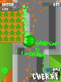 Город в опасности! Его захватил злой черный монстр! Он украл все цвета и теперь все стало черно-белым... Жители мрут от скуки. Сделай его разноцветным с помощью огромного шустрого шарика, глотай шары краски и мажь все вокруг. Устрой цветную революцию! Игра De Blob красочная, динамичная и веселая! Размеры экранов: 128x160, 176x208, 176x220, 240x320, 352x416.