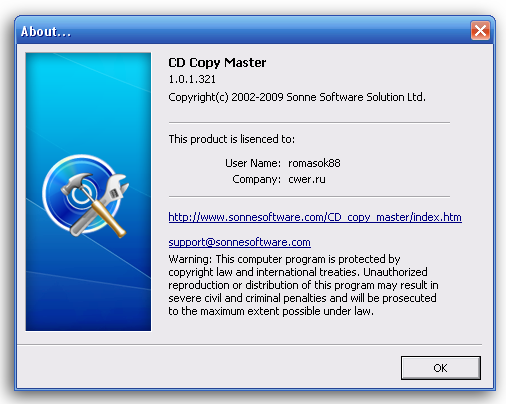 Скачать программу Sonne CD Copy Master 1.0.1.321 (8,21 МБ):