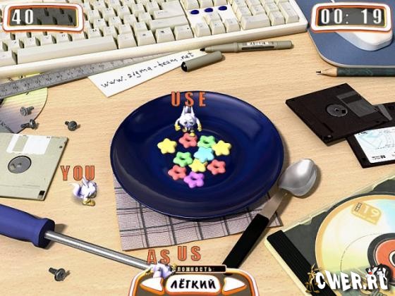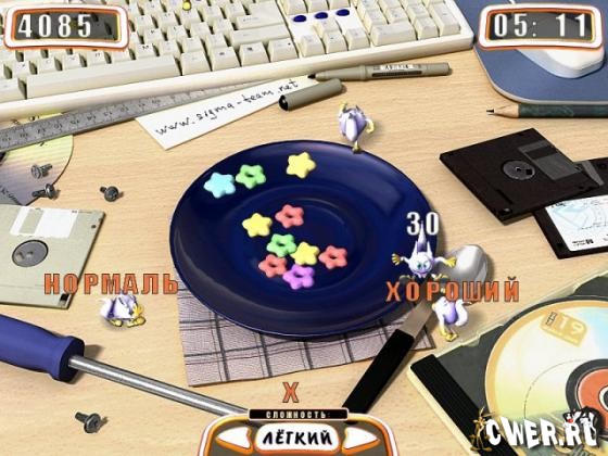 В этой аркадной игре вы сможете в одном из 3 игровых режимов внести посильный вклад в борьбу с коварными проглотами. В первом, который называется "Реакция" необходимо мышкой отгонять Чудиков от тарелки с хрустящими звездочками. В режиме "Память" нужно отыскивать пары одинаковых предметов, которые прячут чудики. Наконец, в третьем режиме вам предстоит набирать на клавиатуре слова, задуманные монстриками.