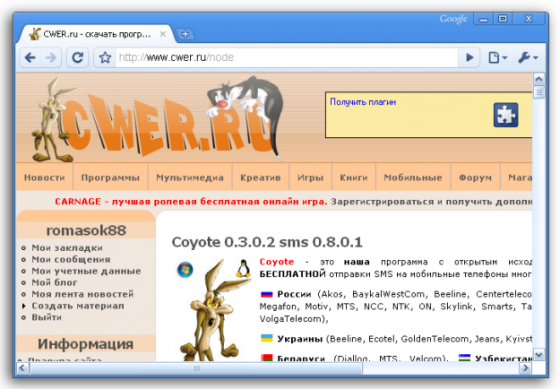 Google Chrome - веб-браузер производства Google с открытым исходным кодом, сочетающий поддержку веб-приложения и удобный поиск с высокой скоростью и стабильностью. В Chrome использованы наработки Apple WebKit и Mozilla Firefox. Из особенностей Chrome разработчики особо выделяют изолированные вкладки, предотвращающие сбой работы программы и обеспечивающие более надёжную защиту от опасных сайтов. Кроме этого, в Chrome реализован новый движок JavaScript V8, который позволит браузеру работать с веб-приложениями нового поколения.