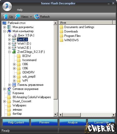 Sonne Flash Decompiler - мощная программа для флеш, позволяющая преобразовывать файлы между форматами SWF и EXE, а также позволяющая редактировать ролики в формате SWF. С помощью данной программы вы сможете редактировать текст, шрифты, картинки, звуки, формы, сценарии и другие элементы, находящиеся в флеш - файле.
