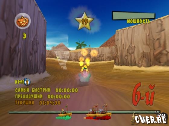 Бери своих друзей и держись крепко, так как твои волосы встанут дыбом в гонке на больших скоростях! Отличный подбор героев, мощность скоростей, компьютерные системы A.I., соревнования и гонки в одиночном режиме и мультиплеере. Подорви своих соперников снарядом метательных морковок или поставь ловушки из тыквенных мин, или обхитри своего оппонента неуязвимым щитом и увеличенной силой.