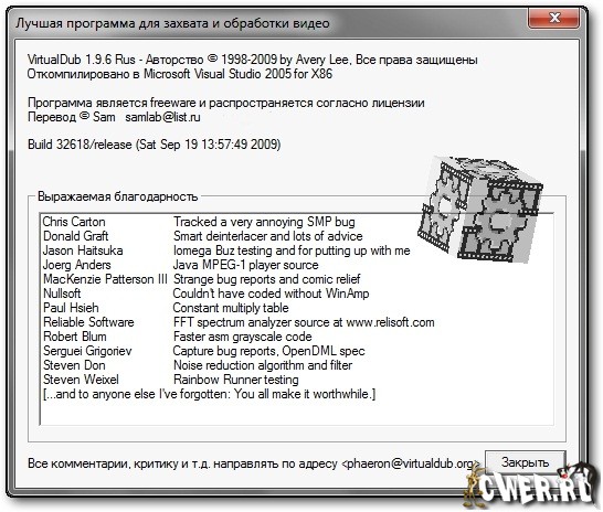 Скачать программу VirtualDub 1.9.6 Build 32618 Rus (1,67 МБ):