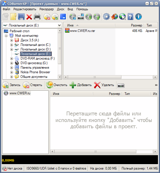 CDBurnerXP - программа для записи CD и DVD, включая Blu-Ray и HD-DVD. Пишет данные с жесткого диска и из ISO имиджей, записывает CD с данными и аудио-CD. Кроме этого, позволяет создавать загрузочные диски, переписывать аудиоCD на жесткий диск "на лету" в файлы MP3, OGG, WMA, WAV, а также сохранять образы CD в виде ISO-файлов. CDBurnerXP может работать как с обычными, так и с перезаписываемыми дисками и понимает "мультисессии".
