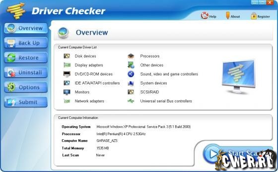 Driver Checker - менеджер драйверов который не только обнаружит и "вытащит" драйвера из системы для их возвращения на место после переустановки системы, но и обновит их на более свежие, из большой базы данных оригинальных драйверов от производителей. Поддерживает и автоматически обновляет драйвера: принтеров и сканеров, USB, звука, Vista, Bluetooth, мыши и клавиатуры, Видео, RAID, модемов и сетевых карт, веб-камер, графических карт, VGA и других Windows-драйверов.