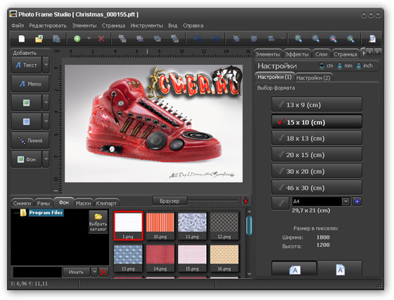 Photo Frame Studio - новая потрясающая программа от польского разработчика MojoSoft, созданная для редактирования и декорации цифровых фотографий. Программа предлагает вам воспользоваться сотней шаблонов рамок для украшения, каждая их которых может быть изменена по вашим индивидуальным требованиям, включая фоновые цвета и изображения. Интерфейс программы был создан с уклоном на то, чтобы каждый пользователь смог без проблем воспользоваться этой программой. Вы сможете украсить ваши изображения с помощью добавления к ним разнообразных рамок, масок, фонов, теней или текста. Кроме того, вы сможете создать вашу собственную композицию шаблона для дальнейшего использования. Также данная программа позволяет вам производить калибровку изображений, включая обрезку и увеличение изображений, а также удаление эффекта красных глаз.