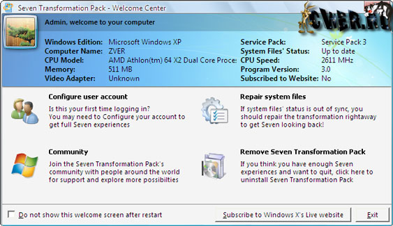 Обновился до третьей версии пакет Seven Transformation Pack - достойный последователь хорошо известного Vista Transformation Pack ... только теперь Вам представляется возможность преобразить свою Win XP в немалоизвестную Win 7. Прозрачные окна, оформление, cайд бар, темы от Аэро создадут впечатление, будто у Вас установлена Windows 7.