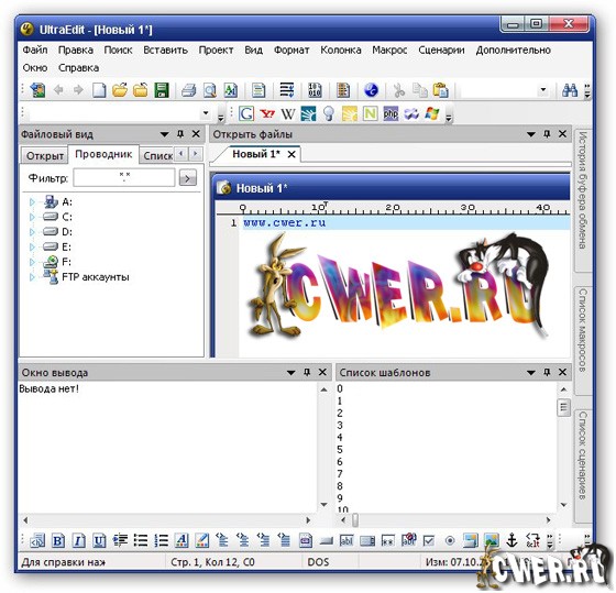 UltraEdit - программа является многофункциональным многооконным редактором с гибкой и мощной системой настроек, также имеется встроенный FTP клиент. Программа предназначена для редактирования текстовых, HEX и HTML файлов, размером до 2 GB. Имеется подсветка синтаксиса при написании программ на C/C++, VB, HTML, Java, Perl, FORTRAN и LaTex. Также, предусмотрена возможность подключения дополнительных словарей с синтаксисом других языков, библиотек тэгов и макросов. Имеется огромное количество дополнительных функций и настроек.