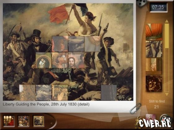 Из Лувра был похищен портрет Моны Лизы! Вы, как опытный детектив, отправляетесь в Париж на расследование. Вам необходимо восстановить 13 шедевров искусства, чтобы выйти на след похитителей. Расставляйте фрагменты картин по своим местам и решайте другие головоломки.