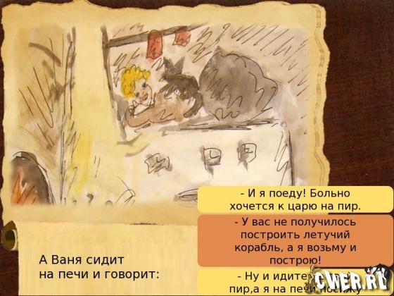 Интерактивная сказка "Летучий корабль" создана по мотивом русской народной и украинской народной одноименных сказок. Ход истории и ее конец зависит от выбора ответов. Возможны как плохие так и хорошие окончания.