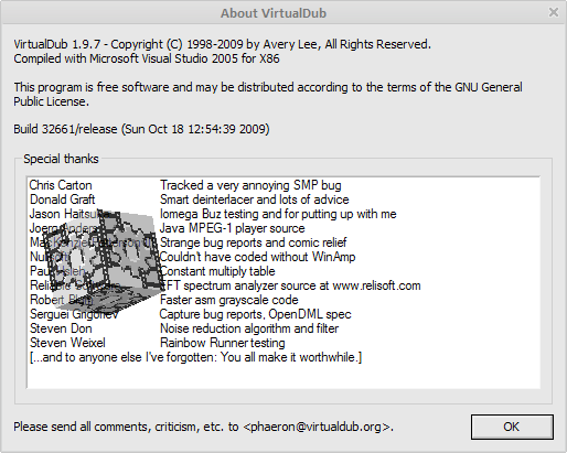 Скачать программу VirtualDub 1.9.7 Build 32661 (1,62 МБ):