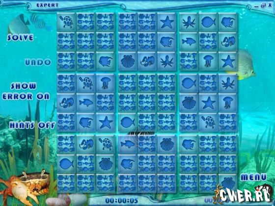 Посетите восхитительный подводный мир, разгадывая классические головоломки судоку в игре. Цель игры осталась такой же, как и сотни лет назад: заполнить все клеточки поля цифрами от 1 до 9 так, чтобы в каждом столбике, строчке и квадрате не было одинаковых цифр.
