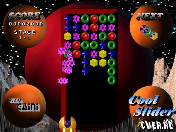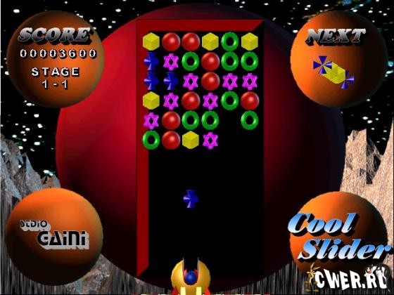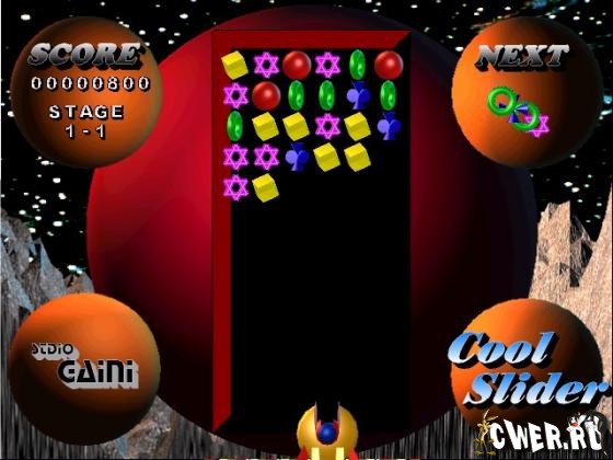 “Перевернутый” вариант классической игры на логику. Нам нужно выстреливать фигурки на потолок таким образом, чтобы складывались пары, тройки и т.д. фигурок одного типа.