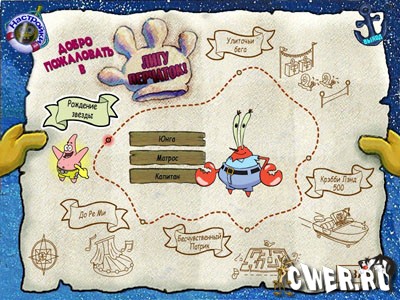 - Учебные мини-игры с Губкой Бобом, Патриком и другими персонажами любимого мультфильма