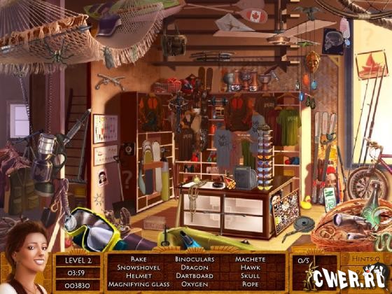 Мини-игра жанра "Я ищу". Ах, джунгли Южной Америки - жаркие, влажные и таинственные, идеальное место для приключений и поисков затерянных артефактов. Дедушка нашей героини уехал в экспедицию и пропал. Разбираясь у него дома, героиня нашла старый дневник и немедленно отправилась на поиски дедушки. В игру можно переигрывать, с каждым разом обновляется список спрятанных предметов и головоломки.