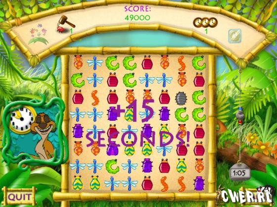Помогите Симбе собирать жучков по 3 и более вместе, чтобы набрать необходимое количество и накормить своих друзей: Тимона и Пумбу.