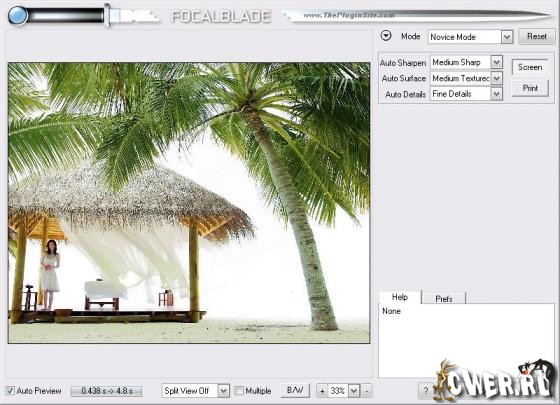 FocalBlade - плагин для Adobe Photoshop, предназначенный для повышения резкости фотографий и для применения специальных фильтров, неразрывно связанных с ее изменением. Плагин имеет большое количество опций, однако новичков это не должно пугать. Допускается переключение в режим Novice, где все лишь несколько меню, причем они имеют явно сюжетное происхождение. Более опытным пользователям будет интересно работать с отдельными фильтрами, которые можно конфигурировать по всем правилам. А для экспертов создан особый режим Expert, в котором сразу открыты все возможные в программе опции. Плагин позволяет применять весьма разнообразные эффекты, которые основаны на изменениb резкости, обработке текстур и добавлении свечения. Богатый набор опций позволяет создавать красивые художественные эффекты. Множество сюжетных программ позволяют быстро применять заранее скомпонованные стилизации.