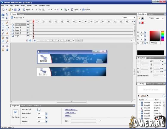 Sothink SWF Quicker - мощное приложение для редактирования и создания Flash роликов в формате SWF для вебсайтов. С помощью этой программы вы сможете создавать флэш-игры, ролики, анимационные динамические баннеры для ваших сайтов, текстовые эффекты, веб-альбомы, слайдшоу презентации и многое другое. Для новичков программа предлагает быстрое создание флэш-анимации с помощью Мастера создания нового проекта с выбором типа и шаблона для вашего проекта. Редактор программы предоставляет возможности для редактирования всех элементов во флэш-видео, например, добавление или изменение текста, замена форм или звуков, назначение ссылок и т.д. К каждому объекту флэш-сцены вы сможете применить встроенные в программу эффекты перехода или появления объекта. Возможно, для вас эта программа сможет стать заменой приложению Adobe Flash, т.к. обладает простым и легким в понимании и использовании интерфейсом.
