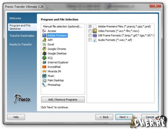 Presto Transfer Ultimate - приложение для автоматизации передачи ваших данных с одного компьютера на другой. Удобный в использовании интерфейс программы создает самораспаковывающийся архив ваших данных, для восстановления которых нужно просто запустить архив на компьютере получателя. Архив можно автоматически записать на CD/DVD, на MP3-плеер через USB, на съемные носители или переслать на удаленный FTP сервер. Вы можете выбрать вручную папки, диски или файлы для копирования или же быстро выбрать и передать данные из множества программ, включая такие программы, как Word, Access, Excel, Photoshop, PowerPoint, Opera, Firefox, Internet Explorer, Outlook, Skype и другие. Интерфейс программы выполнен в виде пошагового Мастера.
